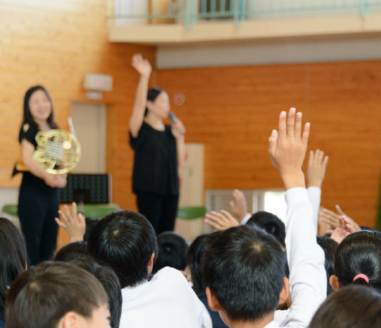 場所は主に学校の体育館になりますが、生徒の人数に応じて音楽室や教室など、最適な場所で公演致します。また、複数校での開催の場合、ホールや公民館での公演も可能ですが、使用料は別途必要になります。