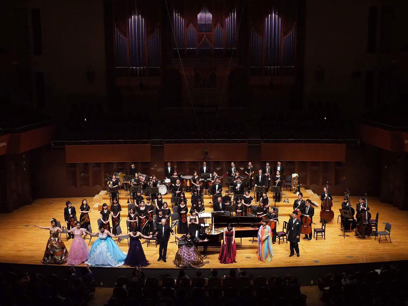 弦楽器(ヴァイオリン、ヴィオラ、チェロ、コントラバス)、木管楽器(オーボエ、ファゴット、フルート、クラリネット)、金管楽器(トランペット、ホルン、トロンボーン、チューバ)からなる30〜70人の大編成です。弦楽器を主体とした心地よい響きを楽しんでいただけます。ホールでの演奏が基本ですが、体育館等でも可能です。