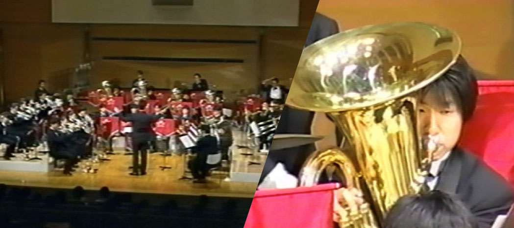 コルネット、テナーホーン、バリトン、ユーフォニアム、トロンボーン、バス(ベース)+ 打楽器による基本30人の編成です。コルネットはトランペットよりも音がやわらかく、パイプオルガンのようなあたたかい音がします。一般的なブラスバンドとは違う特徴的な音をお楽しみください。野外イベントや学校公演に対応しています。